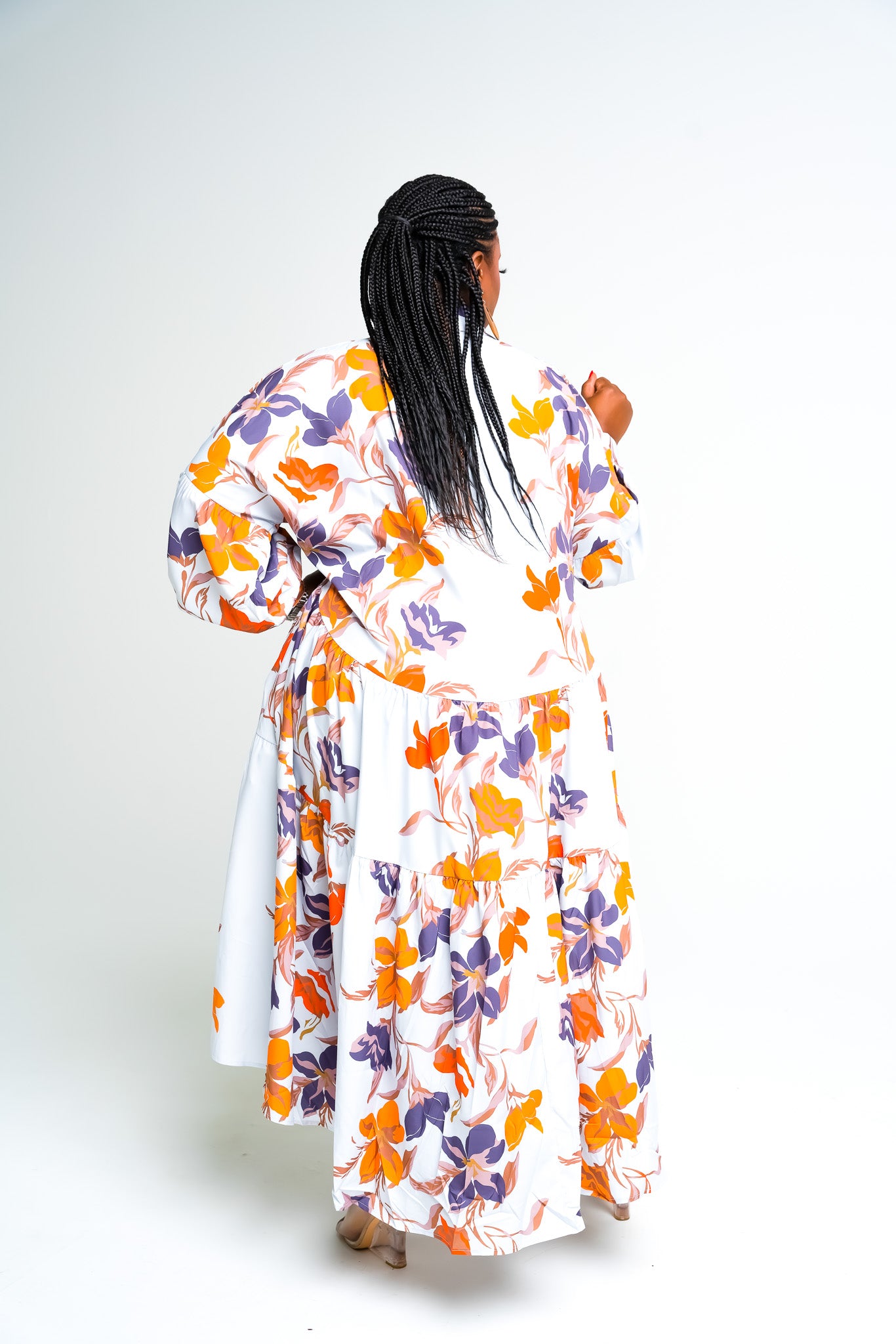 PRINTED TIERED SHIRT DRESS WITH PUFF SLEEVES