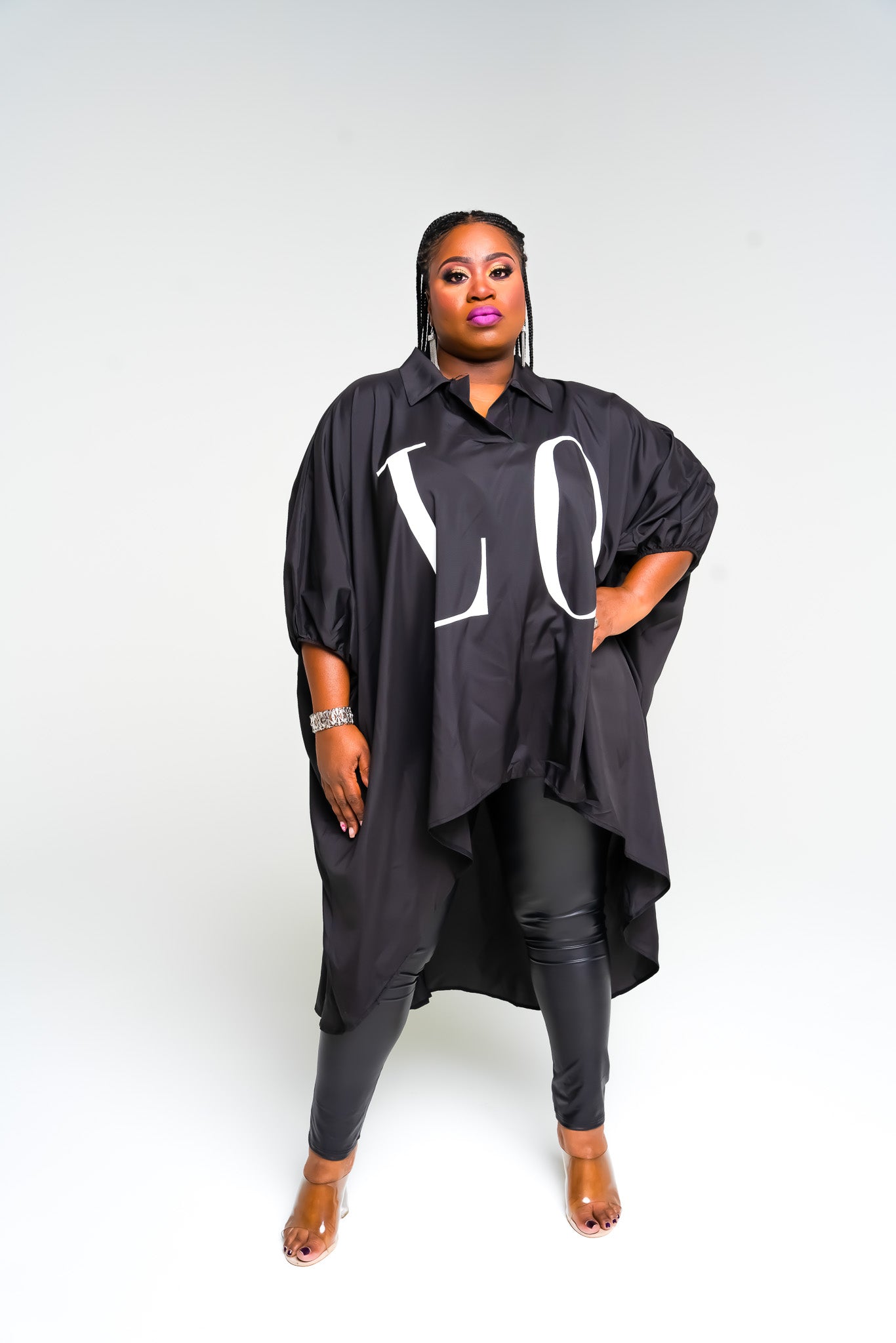 Collared Puff Sleeve Hi-Lo Tunic Top